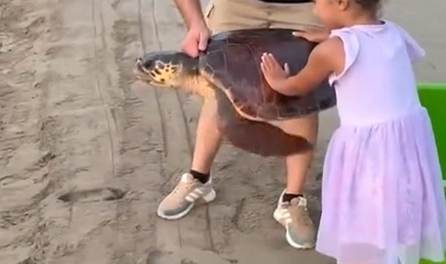 Ağa takılıp boğulma tehlikesi geçiren üreme dönemindeki deniz kaplumbağası, tedavi edilip denizle buluşturuldu
