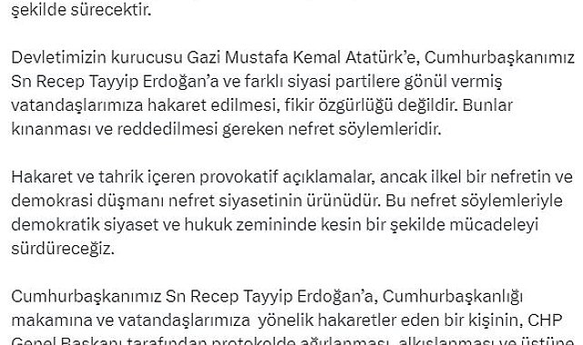 AK Parti'li Çelik: Bir siyasi partinin yöneticileri nefret ve hakaret söylemlerinin hamisi olamaz