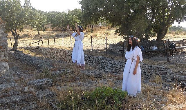 Nazif Cemhan ŞEN/ÇANAKKALE, (DHA)- ÇANAKKALE Boğazı'nda Ezine ilçesi Dalyan köyü yakınındaki 2 bin 400 yıllık liman kenti Alexandria Troas Antik Kenti'nde, süren çalışmaların yanı sıra kazı ekibi tarafından hazırlanan tiyatral oyun ile ziyaretçilere dönemin ruhu yansıtılıyor