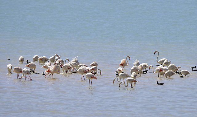 Özcan ÇİRİŞ/BİTLİS, (DHA)- BİTLİS'in Adilcevaz ilçesindeki Arin Gölü flamingolarla şenlendi