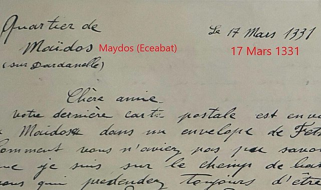 Nazif Cemhan ŞEN/ÇANAKKALE, (DHA)- ÇANAKKALE Deniz Savaşı sırasında Maydos Mıntıka Komutanı olarak görev yapan Mustafa Kemal Atatürk'ün arkadaşı Madam Corinne'ye yazdığı mektupta bir detay ortaya çıktı