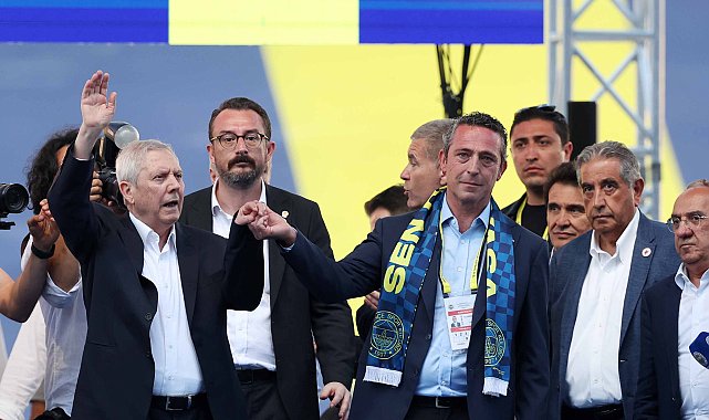 Fenerbahçe Başkan Adayı Aziz Yıldırım, başkanlık seçiminde resmi sonuçlar açıklanmadan kürsüye gelerek mevcut başkan ve başkan adayı Ali Koç'a başarı temennisinde bulundu.Fenerbahçe Olağan Seçimli Genel Kurulu'nda başkanlık seçimi için yapılan oyların sayım işlemi devam ediyor. Başkan adaylarından Aziz Yıldırım, mevcut başkan ve başkan adayı Ali Koç ile birlikte sayım işlemleri devam ederken kürsüye geldi. Tribünlerden gelen tezahüratlara karşı birlikte kürsüye çıkan iki isim, birbirlerinin ellerini havaya kaldırdı. Ardından Aziz Yıldırım, kürsüde bir konuşma yaptı. Fenerbahçe kongresinde bir demokrasi şöleni yaşandığını ifade eden Yıldırım, "Hepinize teşekkür ediyorum. Ben ve arkadaşlarım görevimizi yaptık Fenerbahçe'de, yol haritasını çizdik. İnşallah sayın Ali Koç ve arkadaşları, bu yol haritasının doğrusuyla Fenerbahçe'yi bu sene şampiyon yaparlar. Biz de elimizden gelen desteği veririz. Hepinizi seviyorum, saygılarımı sunuyorum. İyi ki varsınız, iyi ki Fenerbahçeliyiz" dedi. Konuşmanın ardından Aziz Yıldırım ve Ali Koç birbirine sarıldı ve Yıldırım, Koç'a başarı dileklerinde bulundu. GÖRÜNTÜ DÖKÜMÜ: Aziz Yıldırım'ın açıklamaları Yıldırım ve Koç'un yan yana görüntüleri Detay görüntüler(FOTOĞRAFLI)