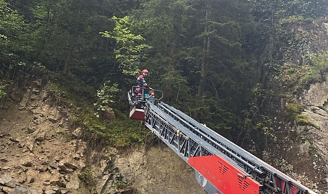 TRABZON'un Maçka ilçesinde manzarayı havadan görüntülemeye çalışırken ormana düşen dronu ararken kayalıklarda mahsur kalan baba ve oğlu, itfaiye ekipleri tarafından kurtarıldı.İlçeye bağlı Altındere Mahallesi'nde manzarayı havadan görüntülemek isteyen N.M. ile oğlu O.K.M.'nin uçurdukları dron, ormana düştü. Dronu bulmak için ormana giren baba-oğlu, kayalıklarda mahsur kaldı. İhbarla harekete geçen itfaiye ekipleri, bölgeye intikal ederek kurtarma çalışması başlattı. İtfaiye ekipleri, kayalıklardaki baba ve oğluna itfaiye merdiveniyle ulaştı. Ekipler, N.M. ve O.K.M'yi güvenli şekilde bulundukları yerden kurtardı. Baba, oğlu ve yakınları, kendilerine ulaşarak yardım eden itfaiye personeline teşekkür etti.