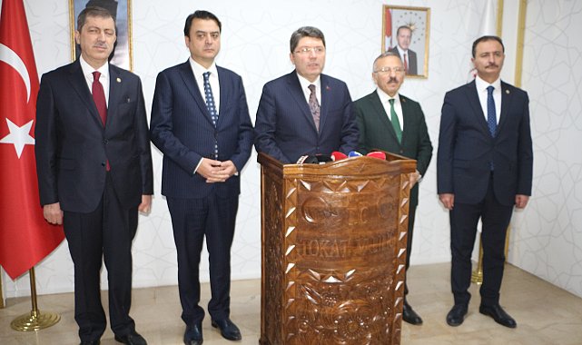 'YARGI SOKAK HAREKETLERİNDEN ETKİLENMEZ'Tokat'ta bir dizi programa katılan Adalet Bakanı Yılmaz Tunç, Artova Adalet Sarayı temel atma töreninin ardından Tokat Valiliği ile Tokat Belediyesi'ni ziyaret etti