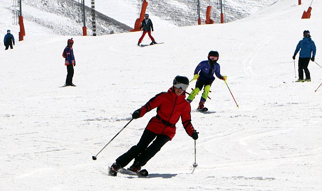 KAR kalitesi, uzun pistleri, doğası ve tesisleriyle kış turizminin gözde kayak merkezlerinden Palandöken'de, Ramazan Bayramı tatili yoğunluğu oluştu. Nisan ayında karın tadını çıkaran tatilciler, güneşin altında kayak yaptı. Kent merkezine 5, havalimanına 15 dakika uzaklıktaki Palandöken Kayak Merkezi'ne gelen yerli ve yabancı tatilciler, deniz seviyesinden 3 bin 176 metre yükseklikte karlı doruklarda nisan ayında bile kayak yapıyor. Ramazan Bayramı tatili nedeniyle Palandöken'deki tesislerde doluluk oranı beklentiyi aştı. 25 kilometre uzaklıktaki Konaklı Kayak Merkezi ile birlikte 55 kayak pisti bulunan ve aynı anda 40 bin kişinin kayak yapabildiği Palandöken'de, kayak ve snowboard yapmasını bilmeyenlerse kızakla kayıyor.'1 METRENİN ÜZERİNDE KAR VAR'Palandöken'deki bir otelin genel müdürü Ali Güney, Bayram tatili nedeniyle Palandöken'e Türkiye'nin ve dünyanın dört tarafından yerli ve yabancı turist geldiğini söyledi. Güney, bayram tatiline beklentilerin çok üzerinde girdiklerini belirterek, "Palandöken, Konaklı ve Kandilli kayak merkezlerinin bulunduğu Erzurum, buz pateni salonları, Türkiye'deki tek kayakla atlama kuleleri, kaplıcaları ve tarihi özelliğiyle kış turizmine hizmet ediyor. Erzurum'da kayak sezonu aralık ayı ile başlıyor ve nisan ayının sonuna kadar sürüyor. Yaklaşık 120 gün olan kayak gününün 100 günü yakıcı güneş altında yapılıyor. Şu an pistlerde, sıkıştırılmış 1 metrenin üzerinde kar var. İklim koşulları kış turizmi yapılması açısından son derece elverişli" dedi.'PİSTLER MUHTEŞEM'Palandöken'de kayak yaparak tatilin keyfini doyasıya çıkardıklarını söyleyen Taner Döşkaya, "Türkiye'de şu an kayak sadece Palandöken'de yapılabiliyor. Pistler muhteşem. Sahillerde yakıcı güneş altında deniz ve kum, bizler de burada kar ve kayağın tadını çıkarıyoruz" diye konuştu. Palandöken'e Samsun'dan ailece geldiklerini söyleyen Meltem Dündar, "Eşim Palandöken'e daha önce birkaç kez geldi. Ben ilk kez geliyorum ve burayı çok beğendim. Kayağı yeni öğreniyorum. Bana göre şu anda Palandöken'de olmak deniz ve kumdan daha güzel geliyor" dedi.'BURAYI ÇOK BEĞENDİM'9 günlük tatilde Erzurum'da kalıp Palandöken'de kayak yapmayı tercih ettiklerini söyleyen Yavuz Kıyıcı, "Deniz ve kum yerine doyamadığımız kayağa devam ediyoruz. Kar kalitesi ve hava muhteşem. Herkesi Palandöken'e bekliyoruz" diye konuştu. Ankara'dan gelen Asya Karlı ise "Palandöken bu sene kayak sezonunda üçüncü farklı yere gelişimiz. Burayı çok beğendim. Sezon sonu olmasına nedeniyle alt kısımlar kapalı ama yine de çok güzel. Aslında tam olarak deniz, kum mevsimi değil. Bu nedenle kayağa devam ediyoruz" dedi.
