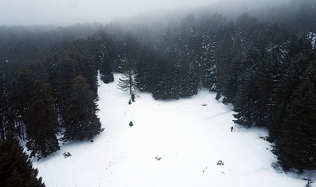 TÜRKİYE'nin önemli kış turizmi merkezlerinden Uludağ, aralıklarla devam eden kar yağışıyla beyaza büründü. Kayakseverlerin 'beyaz cennet' olarak tanımladığı Uludağ'ın kıvrımlı yolları ile Milli Park'taki eşsiz kış manzarası dronla havadan görüntülendi.Kayakseverlerin 'beyaz cennet' olarak tanımladığı, Türkiye'nin önemli kış turizm merkezlerinden, 20 otel, tesis ve 8 bin 350 yatak kapasitesine sahip Uludağ'da, mevsimin ilk kar yağışı 17 Ekim'de düşerken, kayak pistleri 15 Aralık'ta açıldı. Kayak pistlerinin yerli ve yabancı turistlerle dolduğu Uludağ'da, kar kalınlığı 93 santim olarak ölçülürken, hava sıcaklığı en yüksek sıfırın altında 9, en düşük sıfırın altında 13 derece olarak kaydedildi. Özellikle hafta sonları tatilcilerin akın ettiği Uludağ, aralıklarla devam eden kar yağışıyla beyaza büründü. Yaban hayvanları ile endemik bitki türlerine ev sahipliği yapan Uludağ Milli Parkı ile Oteller Bölgesi'ne uzanan kıvrımlı yollardaki manzara yağlı boya tablolarını aratmazken, kışın seyirlik görüntüsü dronla havadan görüntülendi.