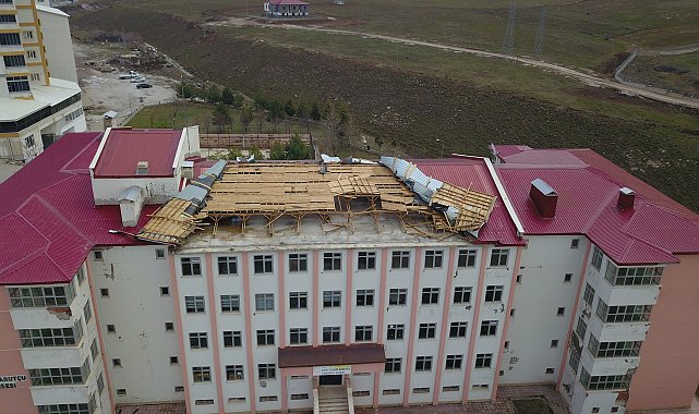 Özcan ÇİRİŞ/BİTLİS, (DHA)- BİTLİS'te dün akşam saatlerinde etkili olan kuvvetli fırtına sırasında lise binasının çatısı uçtu