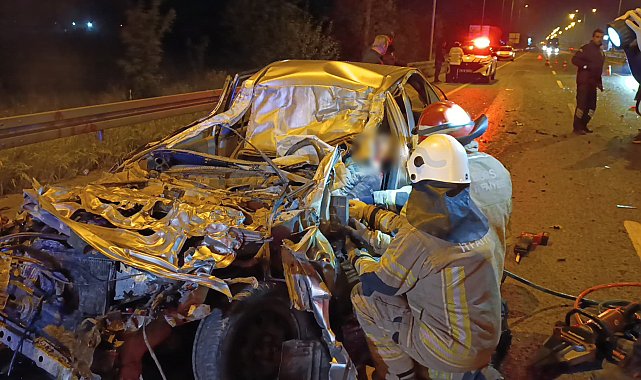Bursa'da, çarptığı kamyonun altına giren otomobilin sürücüsü ağır yaralandı