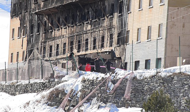 BOLU'da Kartalkaya Kayak Merkezi'nde 78 kişinin yaşamını yitirdiği yanan Grand Kartal Otel'de, Çalışma ve Sosyal Güvenlik Bakanlığı müfettişleri inceleme yaptı.Köroğlu Dağları'nın zirvesinde bulunan kayak merkezi Kartalkaya'da 21 Ocak gece saatlerinde Grand Kartal Otel'in mutfak kısmından başlayan yangında 78 kişi yaşamını yitirdi. Olayın ardından başlatılan soruşturma kapsamında 19 kişi tutuklanırken, son olarak oteli denetleyen FQC Global Danışmanlık A.Ş.'nin yetkilisi Ali A. İstanbul'da gözaltına alındı. Bolu'ya getirilen şüphelinin İl Jandarma Komutanlığı'ndaki işlemleri sürüyor.Otel yangını ile ilgili çok yönlü soruşturma sürerken Çalışma ve Sosyal Güvenlik Bakanlığı müfettişleri, yanan Grand Kartal Otel'e geldi. Müfettişler, jandarma ekipleri ile birlikte otelin piste bakan cephesinden otelin yanan kısımlarına girerek incelemelerde bulundu. Bolu Cumhuriyet Başsavcılığı tarafından soruşturma devam ediyor.