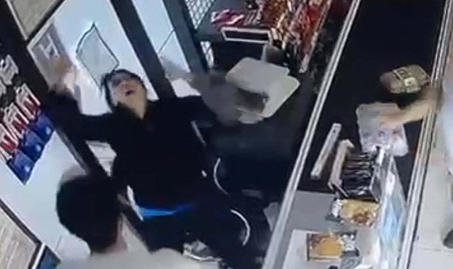 Çalıştığı zincir markettemesai arkadaşı tarafından darbedildi, o anlar kamerada