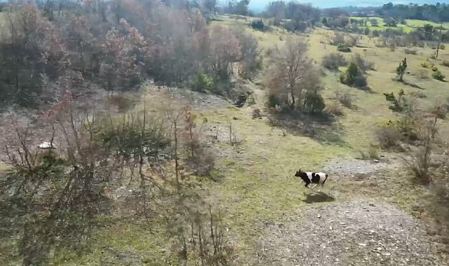 Murat ÖZELCİ/SAFRANBOLU (Karabük), (DHA)- KARABÜK'ün Safranbolu ilçesinde Bayram Öztürk'e ait kaybolan inek, köyün imamı Ahmet Faruk Eşmeli tarafından dronla bulundu