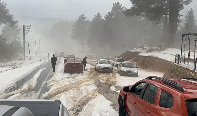 Okan ÇALIŞKAN/ ÇAMLIYAYLA (Mersin), (DHA)- MERSİN'in Tarsus ilçesinde etkili olan dolu nedeniyle birçok noktada yollar trafiğe kapandı