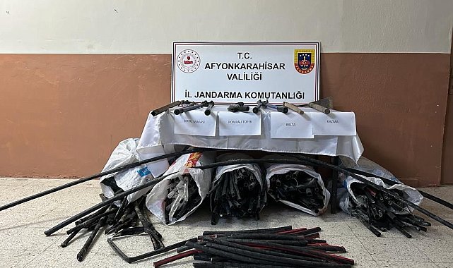 Afyonkarahisar'da demiryolundan yaklaşık 1 ton 50 kilogram bakır kablo çalan 2 şahıs jandarmanın başarılı takibi sonrası yakalandı.