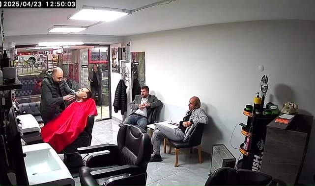 İSTANBUL'un Silivri ilçesi açıklarında meydana gelen 6.2 büyüklüğündeki depremin hissedildiği Sakarya'da bir berber, sarsıntıyla birlikte tıraş ettiği müşterisini koltukta bırakıp, dışarı çıktı. O anlar, iş yerinin güvenlik kamerasına yansıdı. Marmara Denizi'nde, İstanbul Silivri açıklarında dün saat 12.49'da meydana gelen ve 13 saniye süren 6.2 büyüklüğündeki depremin hissedildiği Sakarya'nın Adapazarı ilçesinde bir berber, sarsıntıyla birlikte paniğe kapılıp tıraş ettiği müşterisini bırakarak dışarı çıktı. Tıraş olan kişi koltukta kalırken, sıra bekleyen 2 müşteri de kendisini dışarı attı. Yaşananlar güvenlik kamerasına yansıdı. Bu arada Adapazarı'nda başka bir berberde de içeride bulunanların panik içinde sokağa çıktığı anlar, güvenlik kameraları tarafından kaydedildi.