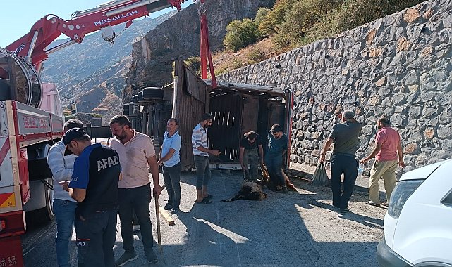 Özcan ÇİRİŞ/BİTLİS, (DHA)- BİTLİS'te devrilen TIR'ın dorsesindeki 100'e yakın koyun ve keçi öldü