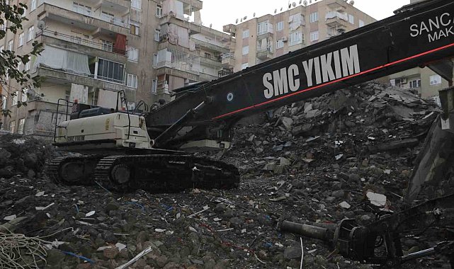 Kahramanmaraş merkezli depremlerde Diyarbakır'da hasar gören 5 bin 459 binanın yarısından fazlasında yıkım tamamlanırken, bir apartman kontrollü yıkım esnasında süzüle süzüle çöktü.6 Şubat tarihinde Pazarcık ve Elbistan merkezli 7,7 ve 7,6 büyüklüğündeki depremlerin etkilediği Diyarbakır'da Valilik, AFAD, Çevre, Şehircilik ve İklim Değişikliği İl Müdürlüğü, Büyükşehir Belediyesi, kaymakamlıklar ve ilçe belediyeleri koordinasyonunda yürütülen çalışmalar devam ediyor.Ağır hasarlı bina yıkım esnasında çöktüKentte depremin etkilediği 5 bin 459 ağır hasarlı binanın yarısından fazlasında yıkım gerçekleşirken, merkez Kayapınar ilçesi Medya Mahallesi'nde ağır hasar gören bir apartman kontrollü yıkım sırasında süzüle süzüle çöktü. O anlar cep telefonu kamerasına yansıdı.Şehirdeki yıkımlardan sorumlu SMC Yıkım Hafriyat Yönetim Kurulu Başkanı Mustafa Çubuk, Valilik, Çevre, Şehircilik ve İklim Değişikliği İl Müdürlüğü, AFAD, ve İl Emniyet Müdürlüğü koordinasyonuyla yıkımları gerçekleştirdiklerini belirtti.Merkez ilçelerin hepsinde ağır hasarlı binaların yıkımını hızlıca sürdürdüklerini aktaran Çubuk, "Öncelikle depremi yaşayan iller ve Türkiye'mize geçmiş olsun. Biz Diyarbakır'ın bütün ilçeleri ve şuanda yıkımların gerçekleştiği Bağlar ilçesinde, kontrollü yıkımlarımız devam ediyor. Kayapınar ve Yenişehir ilçelerinde de yıkım çalışmalarımız aralıksız bir şekilde sürüyor. Makine sayılarımızı artırarak Diyarbakır'ımıza yıkımlarda çok ağırlık verdik. Diyarbakır Valiliğimiz, İl Emniyet Müdürlüğümüz ile birlikte yıkımlarımızı kontrollü bir şekilde gerçekleştiriyoruz. Bağlar ilçemizde binaların yan yana olmasına rağmen ağır hasarlı binalarımızı hiçbir sorun olmadan hızlı bir şekilde yıkımını yapıyoruz" dedi.