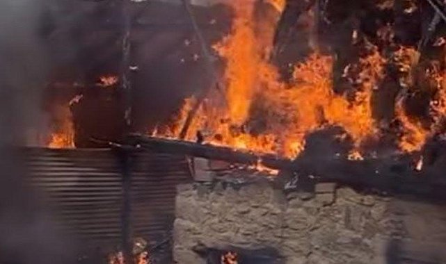 Erzurum'da çıkan yangında 2 ev 1 ahır ve 1 samanlık kül oldu
