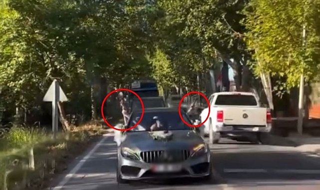 YALOVA'da düğün konvoyu içerisinde yer alan otomobildeki damat M.K. (28) ile yanında oturan gelin D.K (26), ellerine aldıkları tabanca ile havaya rastgele ateş aştı. O anlar, cep telefonu kamerasına yansıdı. Yalova'da davul zurna eşliğinde oynanıp, yakılan meşaleler arasında babaevinden alınan D.K., otomobili kullanan damat M.K.'nin yanına oturdu. Oluşturulan düğün konvoyunun önündeki otomobilde bulunan gelin ve damat, Termal yolu üzerinde araçtan çıkardıkları tabancalarla aynı anda havaya rastgele ateş etti. Gelin ateşlediği silahı iki eliyle tutarken, damat bir eli ile direksiyonu kullandı, bir eliyle de tabanca ile ateş açtı. O anlar, cep telefonu kamerasına yansıdı. Görüntülerin sosyal medyada yer almasının ardından polis, gelin ile damadı yakalamak için çalışma başlattı.