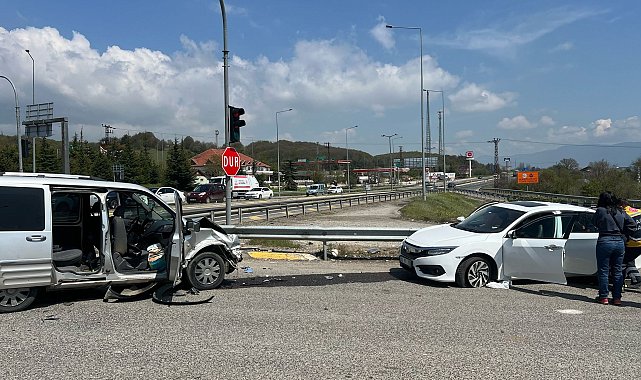 BOLU'da D-100 kara yolu Abant kavşağında hafif ticari araç ile otomobilin çarptığı kazada 10 kişi yaralandı.Kaza, öğle saatlerinde D-100 kara yolu Abant kavşağı mevkisinde meydana geldi. Ankara istikametine giden R.T. yönetimindeki 34 VS 3957 plakalı, 8 kişinin içerisinde olduğu hafif ticari araç ile kavşaktan dönüş yapan F.Y. idaresindeki 42 FY 700 plakalı otomobil çarpıştı. Kazada 10 kişi yaralandı. 10 kişi, olay yerine çağrılan ambulanslarla kentteki hastanelere kaldırıldı. Yaralıların hayati tehlikelerinin bulunmadığı öğrenilirken, kazayla ilgili soruşturma başlatıldı.