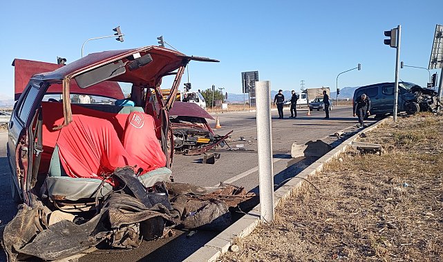 Hafif ticari araçla çarpışan otomobil ikiye bölündü: 2'si ağır, 4 yaralı