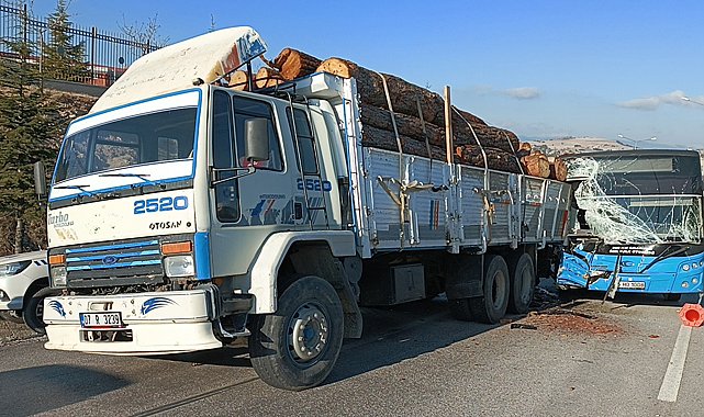 Mesut MADAN/BURDUR, (DHA)- BURDUR'da halk otobüsü, yol kenarında tamiri yapılan tomruk yüklü kamyon ile güvenlik önlemi alan polis aracına çarptı