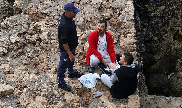Adem AKALAN/ANTALYA, (DHA)-ANTALYA'da balık tutmak için falezlerden inmeye çalışan Alparslan Barış Arıcan (38), hayvan pisliğine basıp ayağı kayınca 5 metreden düştü
