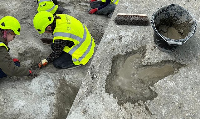 – İNGİLTERE'de 166 milyon yıllık yüzlerce dinozor ayak izi keşfedildi. Oxford ve Birmingham Üniversitelerinin ortak çalışmasıyla, İngiltere'nin Oxfordshire bölgesinde 200'e yakın dinozor ayak izi keşfedildi. Araştırmada izlerin, 166 milyon yıl öncesine ait olduğu ifade edildi. Açıklamada, "Bu izler, uzun boyunlu bir sauropod olan Cetiosaurus ile daha küçük etçil bir dinozor olan Megalosaurus'un hareketlerini ortaya koyuyor" denildi. Araştırmacılar, keşfin dinozorların davranışları ve çevreleri hakkında önemli ipuçları sunduğunu belirtti. Birmingham Üniversitesi mikropaleontologu Kirsty Edgari "Bu, ölçeği ve izlerin büyüklüğü açısından gördüğüm en etkileyici iz alanlarından biri. Zamanın gerisine gidip bu devasa yaratıkların dolaştığı ve kendi işlerini yaptığı bir dönemi hayal edebiliyorsunuz" ifadelerini kullandı.