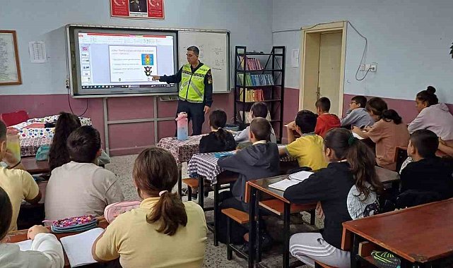 Edirne'de jandarma trafik ekipleri İpsala ilçesinde bir okulda eğitim öğretim gören öğrencileri trafik kuraları uyulması konusunda bilgilendirdi.