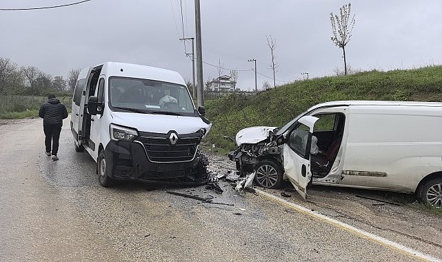 İşçi servisi ile hafif ticari araç kafa kafaya çarpıştı: 13 yaralı
