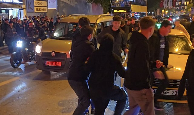 KADIKÖY'de şampiyonluk kutlaması yapan Galatasaray taraftarlarının araçlarına, Fenerbahçe taraftarları Bağdat Caddesi'nde şişe ve taşlarla saldırdı. Olayın ardından polis ekipleri cadde üzerinde yoğun güvenlik önlemi aldı.Galatasaray'ın şampiyonluğunu ilan etmesinin ardından bazı taraftarlar Bağdat Caddesi'nde konvoy yaptı. Bu sırada caddedeki Fenerbahçe taraftarları, camdan bayrak çıkaran Galatasaraylıların araçlarına taş ve şişe fırlattı. Galatasaraylıların araçlarına saldıran Fenerbahçelilere polis müdahale etti.