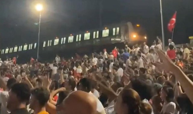 BAKIRKÖY'de seyir halindeki Marmaray treni durarak dev ekranda maç izleyen taraftarlara eşlik etti. O anlar cep telefonu kamerasıyla görüntülendi.A Milli Futbol Takımı, Avrupa Futbol Şampiyonası (EURO 2024) Son 16 Turu'nda Avusturya'yı 2-1 mağlup ederek çeyrek finale yükseldi. Bakırköy Sanatçılar Parkı'nda maç izleyen taraftarların yanında Marmaray'ı durduran makinist, bir süre müsabakayı seyretti. Kısa süre sonra hareket eden makinist, vatandaşlara korna çalarak seferine devam etti. O anlar cep telefonu kamerasıyla görüntülendi.Görüntü Dökümü:--------------------------Marmaray'ın durmasıMarmaray'ın korna çalarak hareket etmesiDev ekranın önünde maç izleyenler