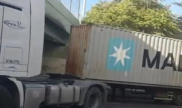 İSTANBUL, (DHA)- BAKIRKÖY'de üst geçide çarpan TIR'ın dorsesi kupa kısmından ayrıldı