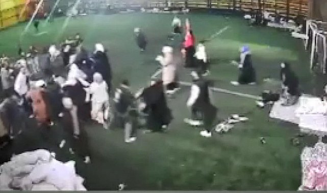 - İSTANBUL'da Silivri açıklarında dün meydana gelen 6,2 büyüklüğündeki deprem 13 saniye sürdü. İstanbul dışında Yalova, Bursa, Tekirdağ ve Balıkesir'de de hissedilen deprem sonrası bazı vatandaşlar parklarda çadır kurdu. Bazıları ise spor salonu, yurt ve camilerde geceyi geçirdi. Başakşehir'de Şahintepe kapalı spor parkındaki futbol sahasında geceyi geçiren aileler arasında tartışma çıktı. Bilinmeyen bir nedenle çıkan tartışma kısa sürede kavgaya dönüştü. Tekme ve yumrukların havada uçuştuğu kavga anları güvenlik kameralarına yansıdı. Çarşamba günü saat 12.49'da Silivri merkezli meydana gelen deprem sonrası bazı aileler geceyi Başakşehir'de bulunan Şahintepe kapalı spor parkındaki futbol sahasında geçirdi. Ailelerin halı sahada dinlendiği sırada henüz bilinmeyen bir nedenle aralarında tartışma çıktı. Erkekler arasındaki tartışma kısa sürede kavgaya dönüştü.Kavgaya kadınlar da dahil olunca ortalık karıştı. Çocuklar kavgayı ayırmaya çalışsa da başarılı olamadı. TEKMELER YUMRUKLAR HAVADA UÇUŞTU Kavga sırasında öfkelenen aileler tekme ve yumruklarla birbirlerine saldırdı. Halı sahanın çeşitli noktalarında dakikalarca süren kavga sırasında kimi çocuklar kaçtı kimi çocuklar ise kavgayı ayırmaya çalıştı. Kavga ve futbol sahasının karıştığı anlar futbol sahasının güvenlik kamerasına saniye saniye yansıdı.
