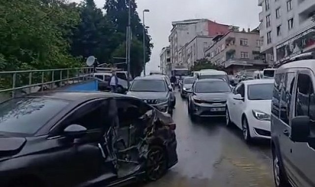 İstanbul- Bayrampaşa'da iş makinesi araçlara çarpıp devrildi-1