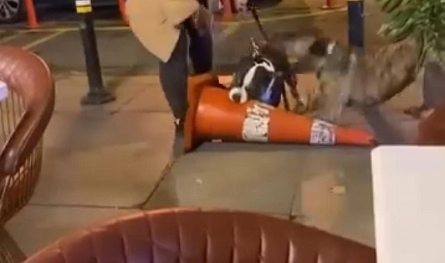 Doğan Can CESUR / İSTANBUL, (DHA)- BEBEK'te bir kadının dışarıya çıkartıp ağızsızlık gezdirdiği pitbull cinsi köpek kaldırımdaki dubaya saldırdı