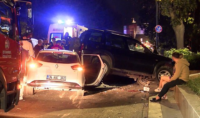 İstanbul- Beşiktaş'ta, kontrolden çıkan otomobil 5 araca çarptı; kaza sonrası kavga kamerada