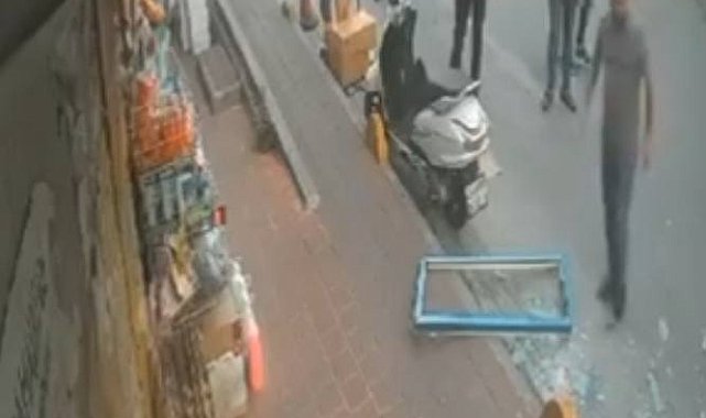 Baran AKKAYA- Emin YEŞİL / İSTANBUL, (DHA)- FATİH'te kaldırım üzerinde arkadaşları ile konuşan bir kişinin üzerine cam çerçeve düştü