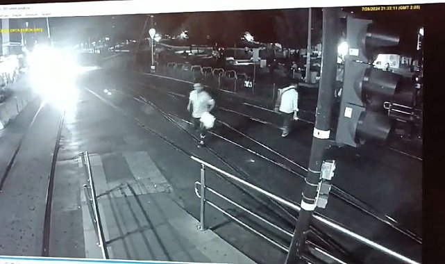 FATİH'te tramvay yolundan, karşıya geçmeye çalışan bir kişiye tramvay çarptı. Tramvayın çarpmasıyla adam hayatını kaybederken yaşanan kaza anı güvenlik kamerasına saniye saniye yansıdı.Olay, dün saat 21.30 sıralarında T1 Kabataş-Bağcılar tramvay hattı Beyazıt durağında meydana geldi. Edinilen bilgilere göre, yolun karşısına geçmeye çalışan bir kişiye tramvay çarptı. Çarpmanın şiddetiyle adam raylar ile peron arasında sıkıştı. Çevredeki vatandaşların ihbarı üzerine olay yerine polis, sağlık ve itfaiye ekipleri sevk edildi. Olay yerine gelen itfaiye ekipleri, tramvay ve rayların arasına sıkışan vatandaşı kaldırım taşlarını sökerek sıkıştığı yerden çıkardı. Sağlık ekipleri tarafından yapılan kontrolde kimliği öğrenilemeyen vatandaşın hayatını kaybettiği belirlendi.KAZA ANI KAMERADAGüvenlik kamerasına yansıyan görüntülerde adam yolun karşısına geçmeye çalıştığı sırada tramvayın çarptığı ve raylar ile peron arasında sıkıştığı görülüyor.Görüntü Dökümü:----------Olaydan güvenlik kamera görüntüleri