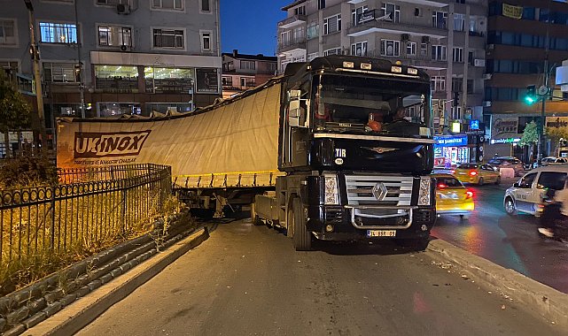İstanbul-Kağıthane'de virajı alamayan TIR'ın dorsesi yan yattı