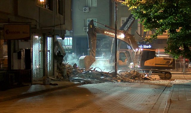İstanbul - Küçükçekmece'de çöken 3 katlı binanın bitişiğindeki bina kontrollü şekilde yıkıldı