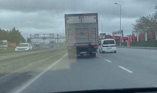 İSTANBUL'da seyir halindeki kamyon şoförü ve hafif ticari araç sürücüsünün yol verme tartışmasıyla başlayan inatlaşma trafiği tehlikeye soktu. Ani manevralarla kaza riski oluşan o anları bir başka sürücü saniye saniye kaydetti. Arnavutköy- Sultangazi yolunda hafif ticari sürücüsü ve kamyon şoförünün yol verme inatlaşması diğer sürücülere kaza tehlikesi yaşattı. Ani manevralarla şerit değiştiren sürücüler kazaya davetiye çıkardı. Tehlikeli inatlaşma başka bir sürücü cep telefonu kamerasıyla anbean kaydetti. Görüntülerde sürücülerin, araçları birbirlerinin üzerine manevra yaparak hızla şeritler değiştirdiği görüldü.