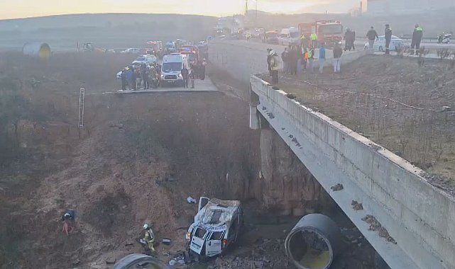 Murat SOLAK/İSTANBUL (DHA) TUZLA Aydınlı Mahallesi'nde servis minibüsü yaklaşık 10 metre yükseklikten dere yatağına düştü
