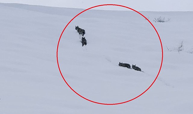 Karla kaplı arazide vaşak ile 3 yavrusu görüntülendi