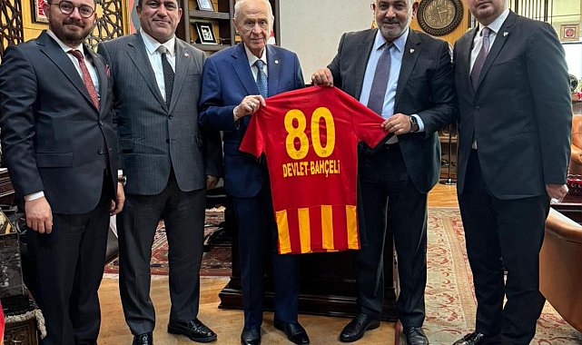 Süper Lig ekiplerinden Kayserispor'da başkan Ali Çamlı ve beraberindeki heyet, MHP Genel Başkanı Devlet Bahçeli'yi makamında ziyaret etti.Kayserispor Başkanı Ali Çamlı ile Başkan Yardımcısı Yardımcısı Emir Akpınar, Asbaşkan Nurettin Açıkalın ve Genel Sekreter Rıza Erkut Yurdeme, MHP Genel Başkanı Devlet Bahçeli'yi makamında ziyaret etti. Ziyarette; sarı-kırmızılı takımın Başkanı Ali Çamlı tarafından Devlet Bahçeli'ye, memleketi Osmaniye'nin plaka kodu olan '80' numaralı ve üzerinde adının yazdığı forma hediye edildi. MHP Lideri Bahçeli'de, ziyaretten duyduğu memnuniyeti dile getirerek, Kayserispor'a başarılar diledi.