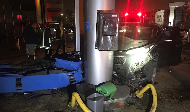 Kazada savrulan otomobil akaryakıt istasyonundaki pompayı devirdi: 1 yaralı