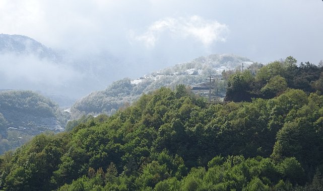 Nazım Özgün ERBULAN/BAŞİSKELE (Kocaeli), (DHA)- KOCAELİ'nin Başiskele ilçesindeki Yuvacık Barajı'nda doğa yeşile bürünürken, yüksek rakımlı bölgeler yağışla birlikte karla kaplandı