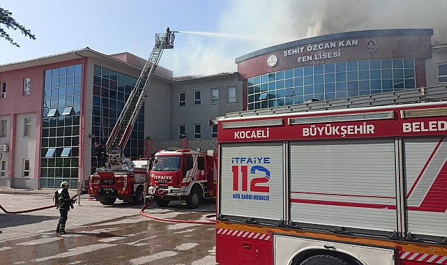 KOCAELİ'nin İzmit ilçesinde bir lisenin çatısında yangın çıktı. Alevler itfaiyenin müdahalesi ile kontrol altında alındı.İzmit ilçesi Ayazma Mahallesi Gündoğdu Bayındırlık Kalıcı Konutları'ndaki Şehit Özcan Kan Fen Lisesi'nin çatısında, öğleden sonra yangın çıktı. İhbarla bölgeye itfaiye ekipleri sevk edildi. Yangına, Kocaeli Büyükşehir Belediyesi personeli müdahale etti. Alevler kısa sürede kontrol altına alındı.Soğutma çalışmaları sürüyor.