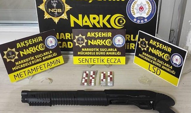 Konya'nın Akşehir ilçesinde polis ekiplerinin gerçekleştirdiği 3 ayrı uyuşturucu operasyonunda 5 kişi gözaltına alındı.Akşehir İlçe Emniyet Müdürlüğü Narkotik Suçlarla Mücadele Büro Amirliği ekipleri, gençleri zehirlemek için sokak satıcılığı yapan uyuşturucu tacirleriyle mücadelesini sürdürüyor. Bu çerçevede yapılan çalışmalarda, narkotik ekipleri Yeni Mahalle de şüphe üzerine durdurduğu G.Y.P. ve O.G.'nin üzerinde arama yaptı. Yapılan aramada şahısların üzerlerinden 1 gram sentetik kannabinoid ele geçirildi. Gözaltına alınan 2 şüpheli hakkında "Uyuşturucu Madde Bulundurmak ve Kullanmak" suçundan işlem yapıldı.Diğer bir çalışmada narkotik ekipleri; A.Y. isimli şüphelinin evinde yaptığı aramada, 110 adet uyuşturucu hap ele geçirdi. Gözaltına alınan şüpheli A.Y. hakkında "Uyuşturucu Madde Bulundurmak ve Kullanmak suçundan işlem yapıldı.Son çalışma ise, Konya plakalı bir araçta uyuşturucu madde olduğu yönünde yapılan ihbar üzerine aracı takibe alan narkotik ekibi, aracı Gazi Caddesi üzerinde durdurdu. Araçta bulunan O.E. ve E.U. gözaltına alınırken araçta ve şüphelinin üzerinde detaylı arama yapmak için araç ve şüpheliler İlçe Emniyet Müdürlüğüne götürüldü. Akşehir Cumhuriyet Başsavcılığından alınan arama kararı ile araçta ve şüphelilerin üzerinde arama yapan narkotik ekibi; 24 adet uyuşturucu hap, bir miktar (3 içimlik) LSD (kağıda emdirilmiş sentetik kannabinoid) ile 1 adet ruhsatsız av tüfeği ele geçirdi. Ele geçirilen uyuşturucuya ve tüfeğe el koyan polis ekipler, şüpheliler O.E. ile E.U. hakkında "Uyuşturucu Madde Bulundurmak ve Kullanmak" ile "6136 Sayılı Kanuna Muhalefet" suçlarından işlem yaptı.