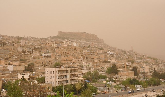 TARİHİ YAPILAR TOZ ALTINDA KALDIMardin'de etkisini arttıran toz taşınımı nedeniyle kent merkezindeki tarihi yapılar, toz altında kaldı
