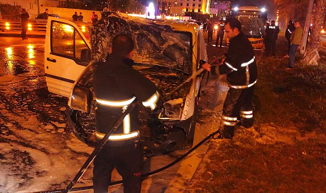 Salih KESKİN/ KIZILTEPE (Mardin), (DHA)- MARDİN'in Kızıltepe ilçesinde 4 aracın karıştığı zincirleme kazanın ardından hafif ticari araç, alev aldı